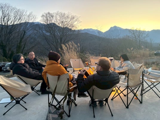 BLANC YATSUGATAKE(メイン会場:山梨県北杜市) 2026年4月24日にグランドオープンを迎える新拠点です。雄大な八ヶ岳と南アルプスを望み、夜には満天の星に包まれます。地元の旬の食材を活かした「薪火料理(八ヶ岳ガストロノミー)」や、客室温泉、焚き火を囲むプライベート空間が、日常から完全に切り離された「余白の時間」を創出し、今回の深い自己内省と対話を強力に後押ししました。