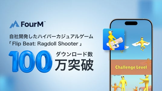 AnyMind Group株式会社(読み:エニーマインドグループ、代表取締役CEO:十河 宏輔)のグループ会社で、ウェブメディア運営企業及びアプリ開発者向けにメディアパートナー事業を展開する株式会社フォーエム(代表取締役:綿本 和真、以下「当社」)は、モバイルアプリを開発する自社スタジオ「Stand App Studio」を通じて制作・配信したハイパーカジュアルゲーム「Flip Beat: Ragdoll Shooter」が、2024年10月の配信開始からわずか1ヶ月で全世界累計100万ダウンロード¹を達成したことをお知らせします。さらに本タイトルはアメリカのGoogle Play Store内のシミュレーションゲームジャンル無料ランキングで11位にもランクインしました。
