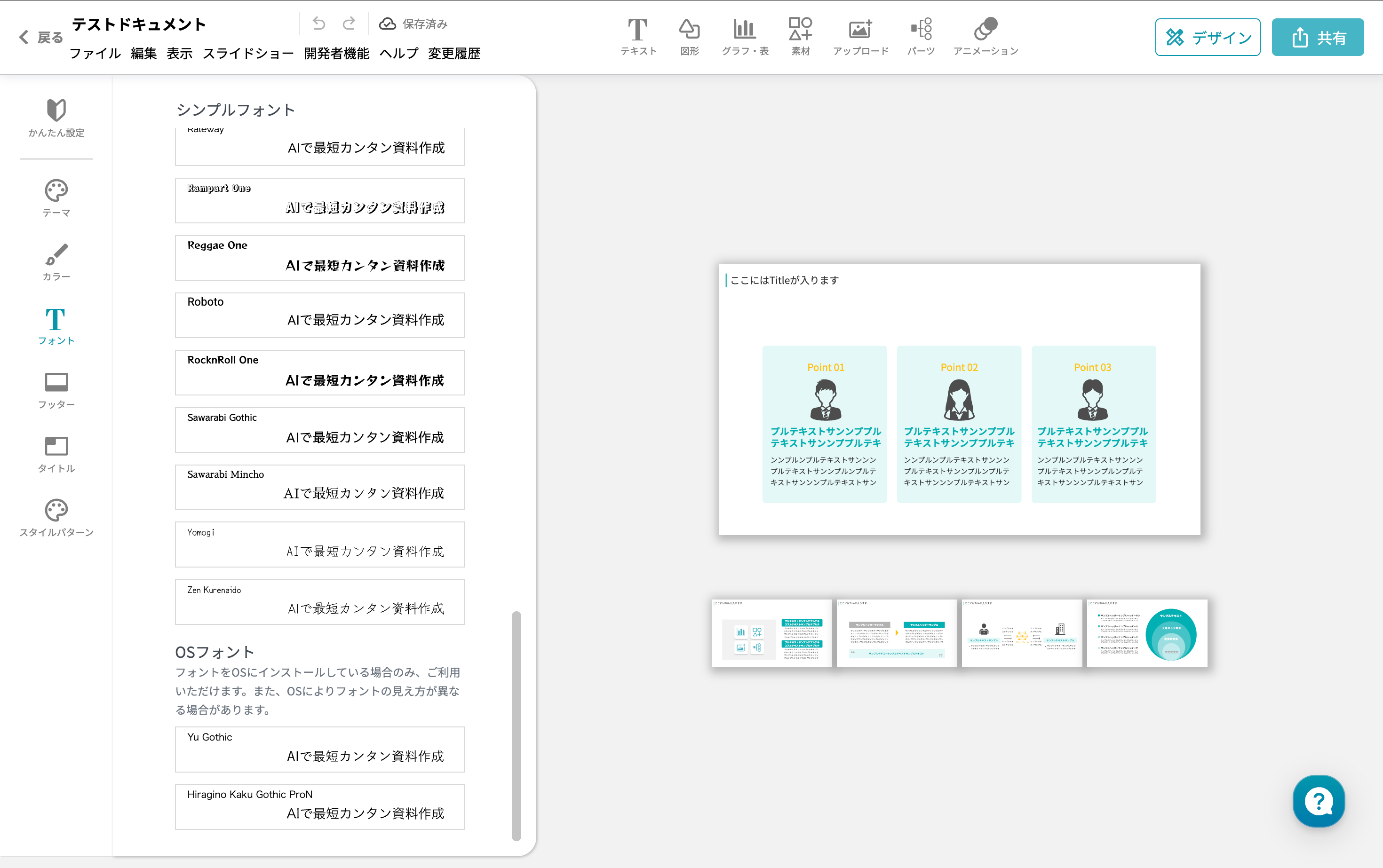 4.OSにフォントが存在する場合、即座にスライドへ反映されます