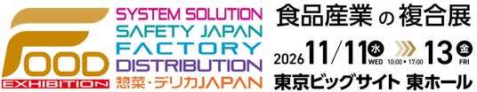 2026年11月11日(水)~13日(金)の3日間、東京ビッグサイト東ホールにて、食品産業の複合展示会『FOOD展2026』を開催いたします。 深刻化する人手不足への切り札として、本年も、5展横断するテーマとして「FOOD-DX」を注目分野に設定。最新のAI、データソリューションを持つ企業の皆様の参画をお待ちしております。