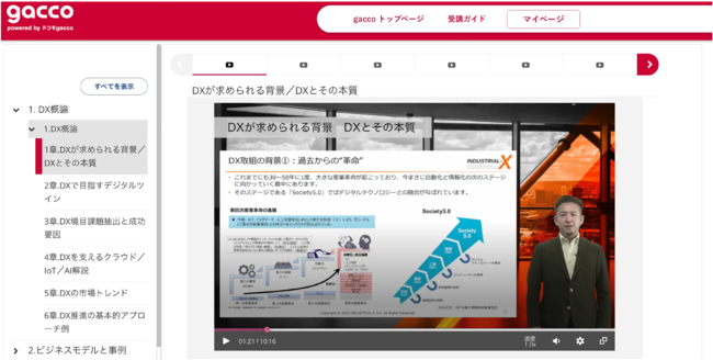 デジタルトランスフォーメーション(DX※1)推進を行う、株式会社INDUSTRIAL-X(本社:東京都港区、代表取締役CEO:八子 知礼、以下:当社)は、株式会社ドコモgacco(本社:東京都港区、代表取締役社長:佐々木基弘)が運営する法人向けeラーニングサービス「gacco for Biz」のLMS(学習管理システム)を活用した、DXの第一人者 八子知礼によるeラーニング「DX基礎講座」を開講します。