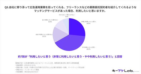 株式会社ベクトル(本社:東京都港区、代表取締役会長兼社長:西江 肇司、東証プライム:6058)の子会社である株式会社キーワードマーケティング(本社:東京都港区、代表取締役会長:滝井 秀典)が展開するメディア「キーマケLab(読み:キーマケラボ)」は、月額広告予算が10万円以上の企業の経営者・役員、マーケティング担当者316名を対象に「広告運用業務におけるフリーランス人材・業務委託者活用に関する実態調査」を実施いたしました。