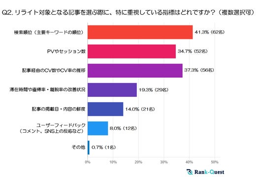 (注2)本設問は複数選択可能ですが、回答を2つまでに制限しています。これにより、リライト対象となる記事を選ぶ際に、重視している指標をより明確に把握することを意図しています。