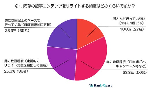 https://rank-quest.jp/column/column/how-to-contents-seo/ )は、2025年2月20日、SEO業務に携わるプロフェッショナル150名を対象にリライトの実態を探る独自調査を実施しました。本調査では、以下の4点を多角的な視点で分析しています。