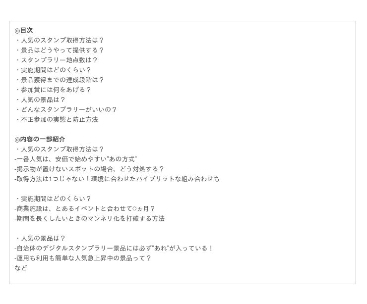 これからデジタルスタンプラリーを企画する方はもちろん、「実施経験はあるが企画のブラッシュアップをもっと行いたい」という方にも、ヒントになる情報が満載の資料になっています。