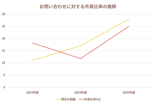 当社への外資系企業からの問い合わせ比率が、2025年度(2025年4月~2026年3月)において