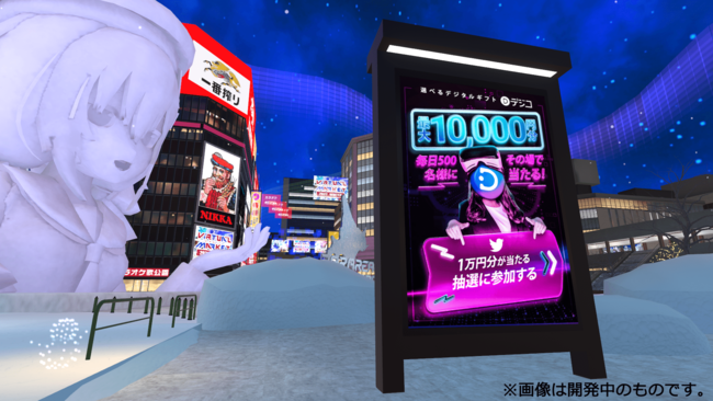本キャンペーンは、12月3日(土)~18日(日)にメタバース上で開催する世界最大※のVRイベント『バーチャルマーケット2022 Winter』との連動企画で、イベント会場内の仮想都市「パラリアル札幌」「パラリアル名古屋」「パラリアルパリ」の3エリアにTwitterキャンペーンに参加できるポスターが掲載されます。キャンペーンはデジコ公式Twitterアカウントから直接参加することも可能です。