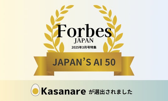 カサナレ株式会社(本社:東京都、代表取締役社長:安田喬一)は、このたび、2025年1月24日(金)発売の「Forbes JAPAN」2025年3月号にて、「JAPAN’S AI 50 日本発AIスタートアップ50選」に選出されたことをお知らせいたします。