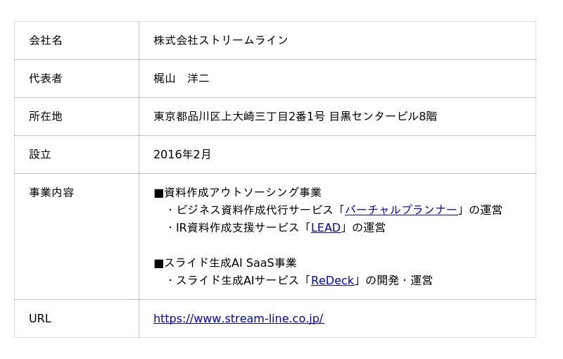 株式会社ストリームライン株式会社ストリームライン(所在地:東京都品川区 代表者:梶山洋二)は、提供するIR資料作成支援サービス「LEAD」の導入事例集を大幅に刷新し、無料公開いたしました。