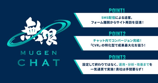 株式会社インフィニティエージェント(本社:東京都千代田区、代表取締役:岡田裕平)は、本日、入力フォームの離脱を防止し、コンバージョン率(CVR)の向上を支援する獲得特化型チャットボットサービス『MUGEN CHAT(無限チャット)』の提供を開始いたしました。