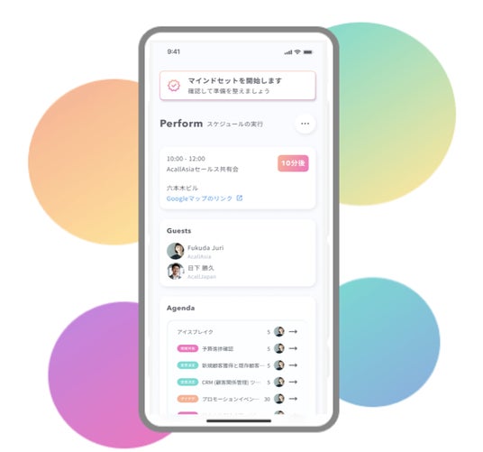 あらゆる仕事の「はじめ」と「終わり」のチェックイン・チェックアウトに着目し、時間価値の最大化をサポートするパーソナルアプリ「Acall Personal」を提供開始いたします。Acallでは、働く人それぞれの1日に寄り添い、取り組むべきことへの集中を促すことが、仕事の質や会議の密度改善などの課題解決につながると考えました。カレンダー連携やアジェンダ作成支援、オンボーディング、AIによるレコメンドなど、パフォーマンス向上をサポートし、働く人の1日をデザインします。