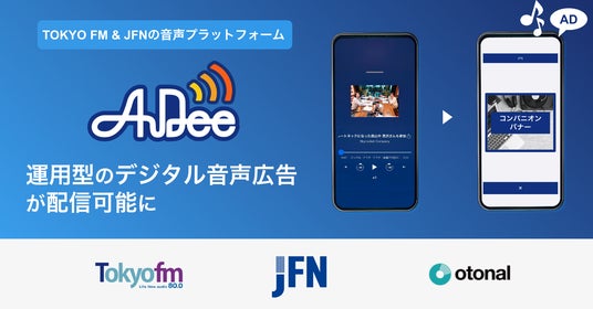 株式会社オトナル(本社:東京都中央区/代表取締役 八木太亮、以下、オトナル)は、TOKYO FMとジャパンエフエムネットワーク(以下、JFN)が共同運営する音声プラットフォーム「AuDee(オーディー)」内の広告枠にデジタル音声広告(オーディオ広告)の実装を行いました。