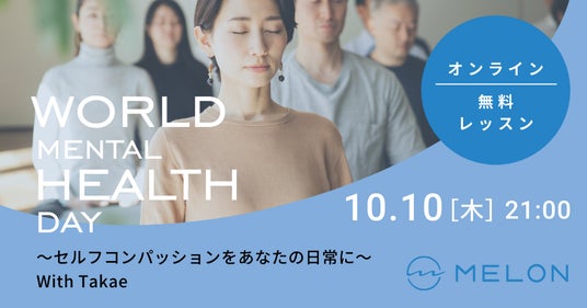 マインドフルネスのオンラインプラットフォーム「MELONオンライン」を運営する株式会社Melon(本社:東京都港区、代表取締役CEO:橋本大佑、以下MELON)は、2024年10月10日(木)の世界メンタルヘルスデーに、無料のオンラインレッスンを開催いたします。