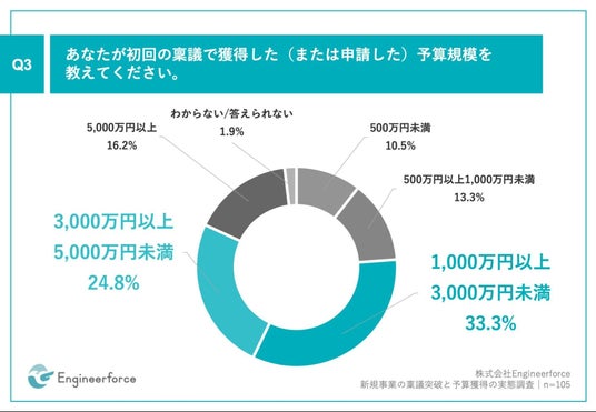 UI/UXデザインに強みを持つIT会社、Engineerforce Inc.(本社:東京都渋谷区、代表取締役:飯田 佳明)は、大手企業(従業員数500名以上)において、過去3年以内に新規事業の稟議提案を経験し、予算獲得に成功または失敗した新規事業担当者・企画担当者105名を対象に、新規事業の稟議突破と予算獲得の実態調査を実施しましたので、お知らせいたします。