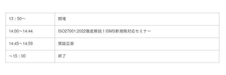 セミナー名:ISO27001:2022徹底解説!ISMS新規格対応セミナー