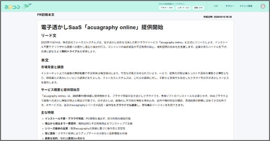 当社は本サービスを通じて、企業の広報活動における「機会損失」を解消し、情報発信を通じた持続的な企業価値の向上を支援してまいります。