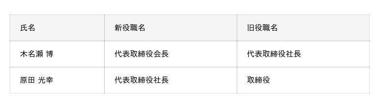 株式会社mitoriz株式会社mitoriz(以下「当社」)は、2025年6月25日開催の取締役会において、代表取締役2名体制へ移行し、創業者の木名瀬博が代表取締役会長に、原田光幸が代表取締役社長に就任することを決議いたしましたので、お知らせいたします。