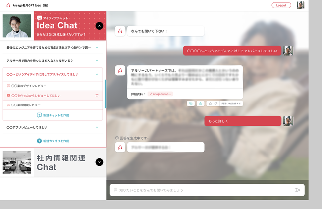 そのためにも、まずはGPTを活用したサービスをいち早く開発し、提供したいと考えています。今回の「Arsaga Insight GPT」はその前段階として、社内のGPT開発に関する知見を蓄積するために開発されました。