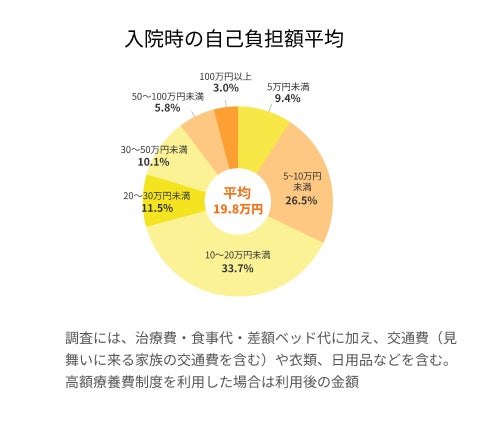 入院期間が短縮される一方で、入院費用の自己負担は依然として高く、平均19.8万円(*2)に達します。高額療養費制度を利用しても1日あたり約2万円(*2)の負担が発生し、入院に伴う交通費や日用品費用、収入の減少も問題となっています。