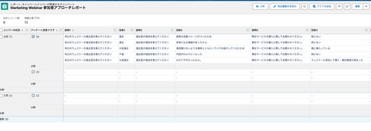 Salesforceのレポート作成機能を利用すると、EventHubで得られた申込み情報、参加状況、アンケート結果をSalesforce内のデータとの共にレポート化することが可能です。イベントやウェビナー開催後の営業成果の可視化や、フォローアップの優先度を瞬時につけることができます。