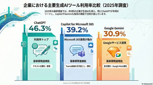 既存のワークフロー(Teams・Microsoft 365)と統合できるツールの普及速度が際立って速い点です。これは「新たなツールを覚える」コストを最小化できる設計が、組織への定着を大きく左右することを示唆しています。
