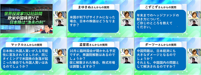 〈昼エクスプレスの内容を深堀りする質問や、今後の相場動向に関する質問のほか、投資戦術についての相談も〉