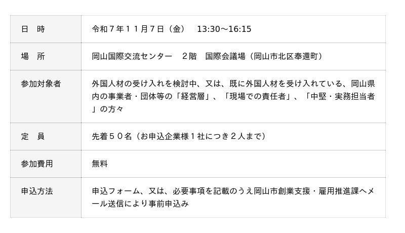 主催 岡山市、(一社)岡山県国際経済交流協会、(株)トマト銀行、JETRO岡山