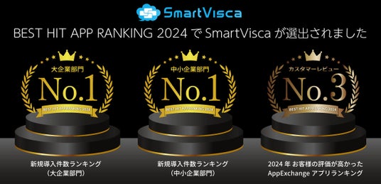 株式会社サンブリッジ(東京都渋谷区、代表取締役社長:梶川拓也)が提供するSalesforce一体型名刺管理「SmartVisca」は、株式会社セールスフォース・ジャパンが発表した「BEST HIT APP RANKING 2024」にて、新規導入件数ランキングで大企業部門・中小企業部門ともに1位、カスタマーレビューランキング(2024年 お客様の評価が高かったAppExchangeアプリランキング)で3位を獲得したことをお知らせします。