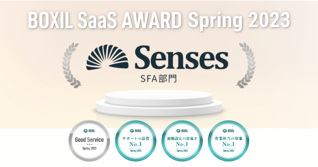 クラウド営業支援ツールSensesが「BOXIL SaaS AWARD Spring 2023」SFA部門で「Good Service」に選出。さらに「サポートの品質No.1」含む3つのNo.1も受賞