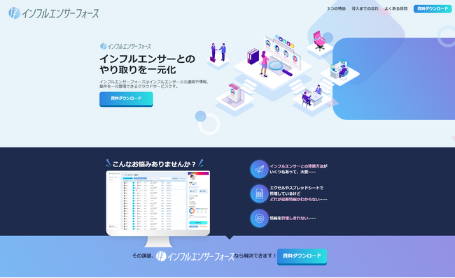 インフルエンサーフォースは、インフルエンサーとの連絡や情報、案件を一元管理できるクラウドサービスです。
