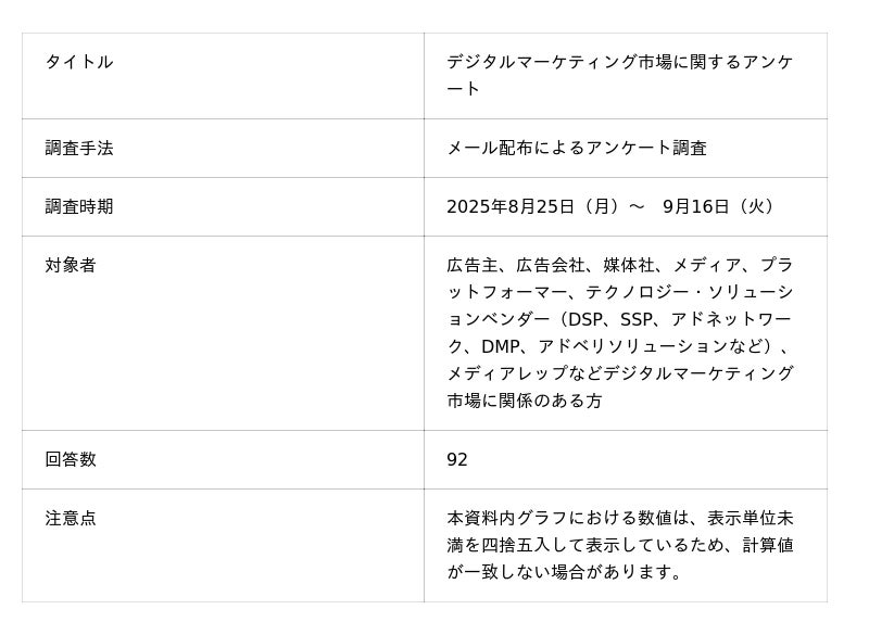 株式会社CARTA HOLDINGSのグループ会社で、デジタルマーケティングを中心とした事業を展開する株式会社CARTA ZERO(本社:東京都港区、代表取締役CEO:宇佐美 進典、以下「CARTA ZERO」)は、国内のデジタルマーケティング業界関係者を対象に、2025年上期のデジタルマーケティング市場動向と今後のインターネット広告におけるトレンドに関する調査を実施し、その結果をまとめたレポートを発表しました。