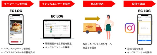 - ECログ上でキャンペーンを作成し、インフルエンサーの応募を受付