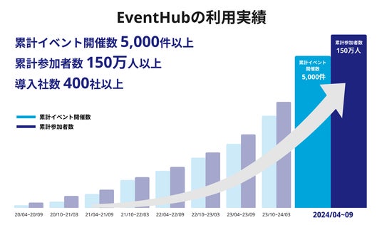 シェアNo.1(※)のイベント・ウェビナーマーケティングプラットフォーム「EventHub(イベントハブ」を提供する株式会社EventHub (東京都港区、代表取締役 CEO:山本 理恵) は「累計イベント開催数」「累計参加者数」「導入社数」を大幅に更新したことをご報告いたします。