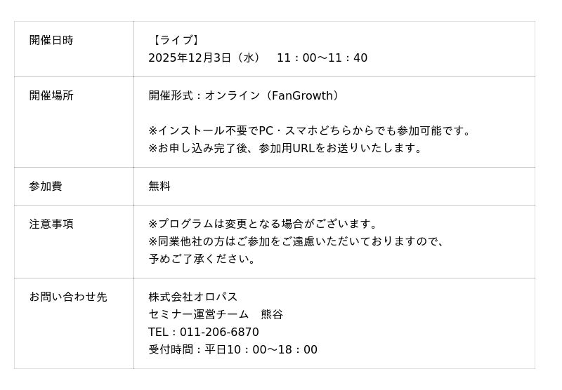SEOツール「パスカル」の開発・提供を行う株式会社オロパスは、2025年12月3日(水)にSEOツール「パスカル」に興味をお持ちの方向けに、パスカルの実際の画面を用いて機能や活用イメージを紹介する30分間のカジュアルウェビナー