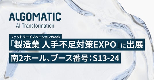 株式会社Algomatic(本社:東京都港区、代表取締役CEO:大野峻典、以下Algomatic)は 、2026年1月21日~23日に、東京ビッグサイトで開催される「ファクトリーイノベーションWeek」内の専門展示会「製造業 人手不足対策EXPO」に出展いたします(南2ホール、ブース番号:S13-24)。