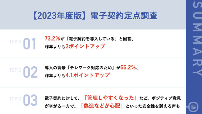 電子契約、2023年「導入済み」の企業は73.2%、昨対比3ポイント増