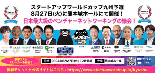 株式会社ペガサス・テック・ベンチャーズ・ジャパン世界100以上の国と地域で予選が行われ、優勝投資賞金約1億5,000万円を誇る世界最大級のビジネス・ピッチコンテスト「スタートアップワールドカップ 2024」の九州予選が、熊本城ホールにて8月27日(火)に開催されます。本予選では、230社を超える応募企業の中から、厳しい書類審査を通過した11社のスタートアップが、世界決勝大会への出場権をかけて競い合います。この白熱するピッチを審査するのは、日本のイノベーション業界を牽引する審査員の方々です。またこの九州予選では九州エリアの県や市区町村、アカデミア、熊本経済同友会、九州・沖縄地銀連携13行などが強力なサポーターとして、本大会を後押ししてくださっています。産学官金連携、イノベーション活動に積極的に取り組むリーダー達が集結する 『スタートアップワールドカップ2024九州予選』 に、是非ともお越しください!くまモンも応援に駆けつけます!