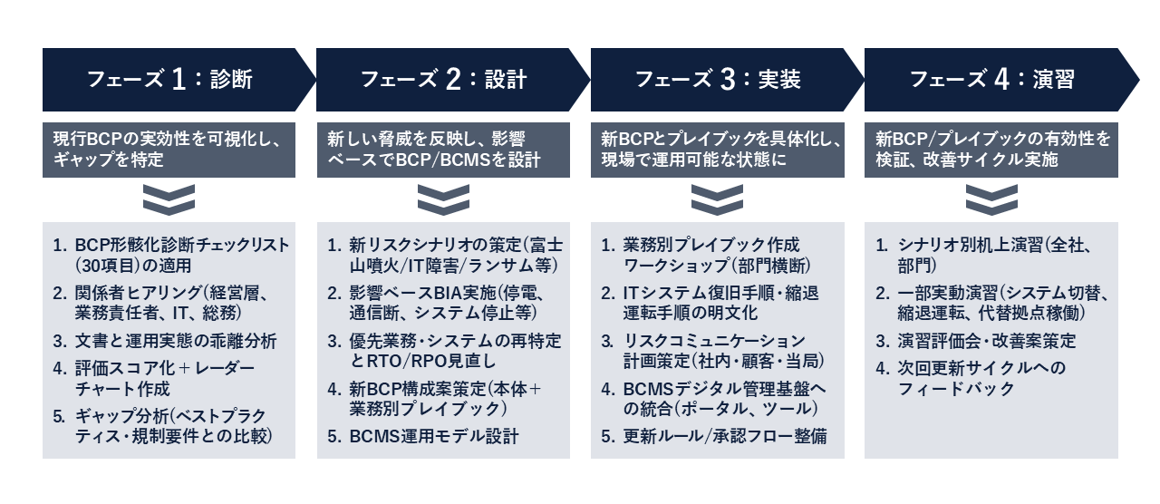 BCP/BCMSの高度化、クラウド導入後の体制再設計、複合災害・サイバー事案への即応力強化を目指す企業