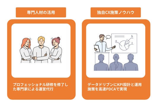 シンセカイテクノロジーズでは、国内トップレベルのコミュニティ運営に特化した専門人材をマネジメントしており、業界や案件毎に適切な運営メンバーのアサインが可能です。また、150種類以上の独自CX施策ノウハウを持ち合わせているため、データドリブンにKPI設計と運用施策を高速PDCAで実現可能です。