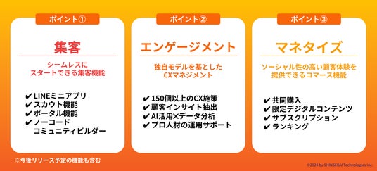 株式会社SHINSEKAI Technologies(本社:東京都渋谷区、代表取締役:大社 武、以下:当社)は、集客からロイヤルユーザーの醸成まで、一気通貫で提供するコミュニティプラットフォーム「MURA(ムーラ)コミュニティ」をリリースいたしました。