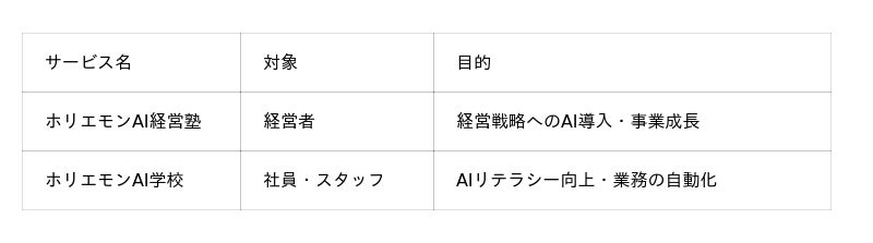 本取り組みは、これまで社員向けのAI教育を主軸としてきた「ホリエモンAI学校」に対し、