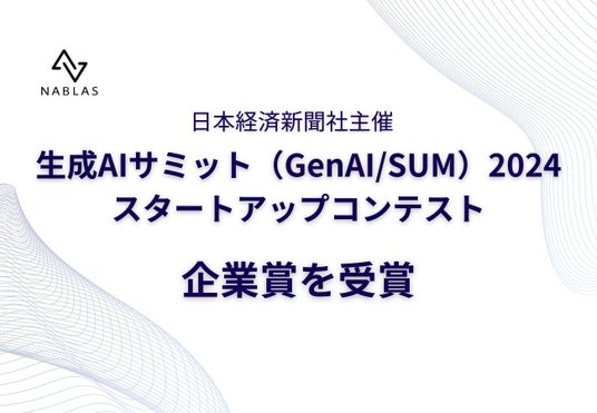 AI総合研究所として活動するNABLAS株式会社 (本社 : 東京都文京区本郷、 代表取締役 所長 : 中山 浩太郎、 以下「当社」)は、日本経済新聞社が主催する「生成AIサミット(GenAI/SUM=ジェンエーアイサム) 2024~ 生成AIが起こす“シン”産業革命」のスタートアップコンテストにて、弊社の「フェイク検知サービス」が企業賞(Lenovo賞)を受賞したことをお知らせします。
