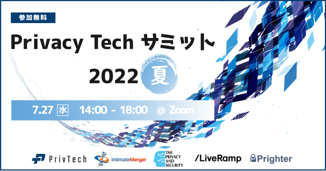 Priv Tech株式会社(本社:東京都新宿区、代表取締役:中道 大輔、以下Priv Tech)はPrivacyTech企業やポストCookieソリューションを提供する企業を招き、無料オンラインサミット「Privacy Tech サミット 2022 夏」を2022年7月27日(水)14:00より開催いたします。