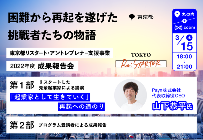 東京都は、困難を乗り越え再起業を目指す起業家を支援する「東京都リスタート・アントレプレナー支援事業(TOKYO Re:STARTER)(以下、本事業)」を実施しています。