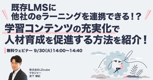 研修のスタイルにとらわれない企業向け人材育成サービスを提供する株式会社LDcube(本社:東京都千代田区、代表取締役社長:新井澄人、以下「当社」)は、「既存LMSに他社のeラーニングを連携できる!?~学習コンテンツの充実化で人材育成を促進する方法を紹介!~」と題してウェビナーを開催しますので、お知らせします。
