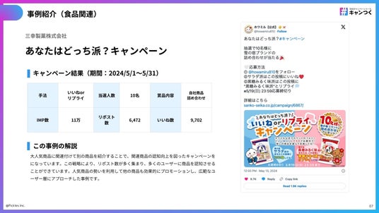 株式会社ピクルス(本社:東京都品川区、代表取締役社長:田中 稔、以下「ピクルス」)は、SNSキャンペーンツール『キャンつく』の2024年上半期の導入事例集を公開いたしました。本事例集は、キャンペーン投稿のエンゲージメント数やそのキャンペーンの手法を掲載し、すべてのキャンペーンについて『キャンつく』からの成果解説を提供しています。