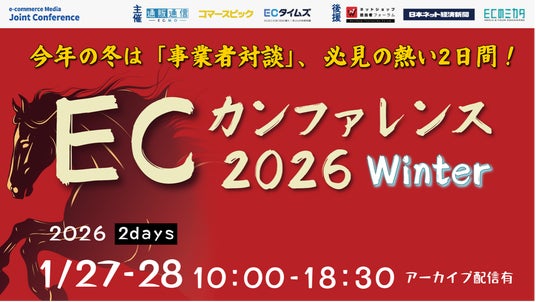 株式会社ユニメディア株式会社ユニメディア(本社:東京都千代田区、代表取締役社長:末田 真、以下「当社」)が運営する「通販通信ECMO」は、2026年1月27日(火)・28日(水)に「ECカンファレンス2026 Winter」をオンラインにて開催いたします。本セミナーは、「通販通信ECMO」、「コマースピック」、「ECタイムズ」、「ネットショップ担当者フォーラム」、「日本ネット経済新聞」、「ECのミカタ」など、EC通販メディアの協力による大規模なセミナーです。2日間にわたり、EC業界のトップリーダーによる貴重な知見を提供いたします。