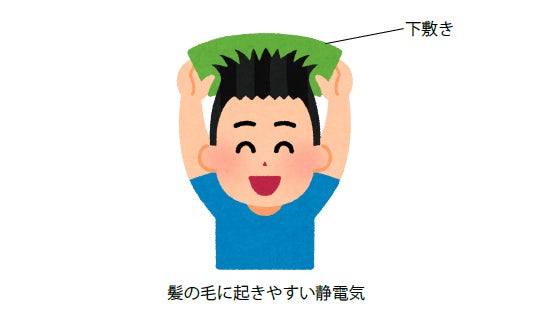 子供のころ、下敷きを頭にこすり、髪の毛を逆立たせて遊んだことがあるでしょう(図3)。髪の毛を湿らせると、静電気は起きにくくなり、髪の毛も立たなくなります。