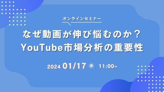 動画を起点として2,000社以上の企業にコンサルティング事業を展開する株式会社LOCUS(東京都千代田区、代表取締役 瀧良太)は、2024年1月17日(水)11時より、ウェビナー「なぜ動画が伸び悩むのか? YouTube市場分析の重要性」を開催いたしますのでお知らせいたします。