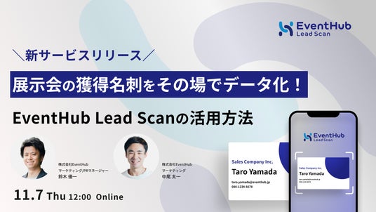 11月7日(木)に「EventHub Lead Scan」のリリースを記念したイベントを開催します。新サービス「EventHub Lead Scan」の概要をお伝えするとともに、実際にEventHub Lead Scanをオンラインデモを通してご体験いただきます!